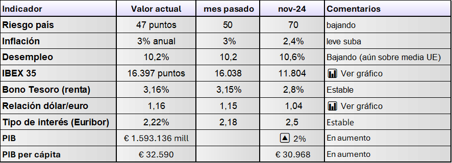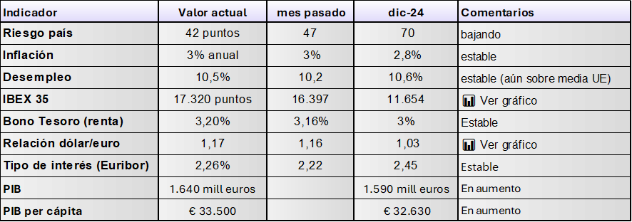 La economía española cerró 2025 mostrando una evolución muy positiva y entra en 2026 con señales claras de fortaleza. La reducción del riesgo país, una inflación controlada, el empleo estable y un crecimiento sostenido del PIB confirman un escenario macroeconómico más equilibrado que en años anteriores.