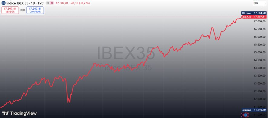 Los mercados financieros acompañan esta tendencia: el IBEX 35 marcó máximos históricos, los rendimientos de la deuda soberana se mantienen estables y los tipos de interés comienzan a normalizarse gradualmente. Todo ello en un contexto de crecimiento económico que sigue superando la media de la eurozona.