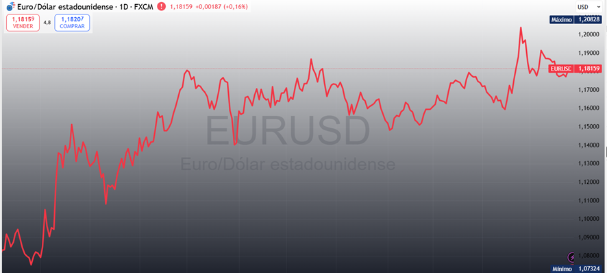 Evolución euro/dolar últimos 12 meses